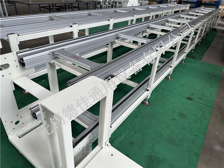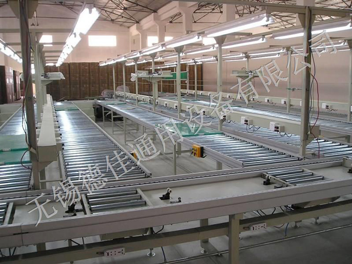 流水線運轉(zhuǎn)有:輸送機、皮帶輸送機、鏈板輸送機、爬坡輸送機以及伸縮輸送機等。